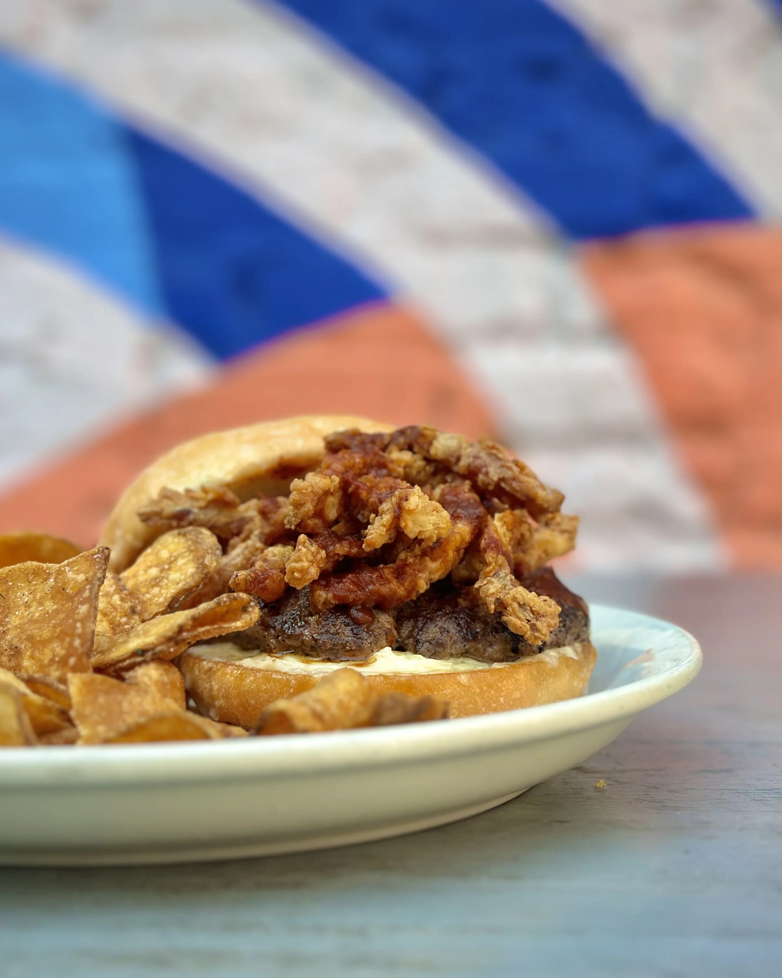 Third-pound Hand-Pressed Specialty Beef Blend Patty, Thick Cut Deep Fried Bacon, Soothsayer Beard Sauce, Garlic Aioli, Rendered Duck Fat, on a Potato Bun | 20